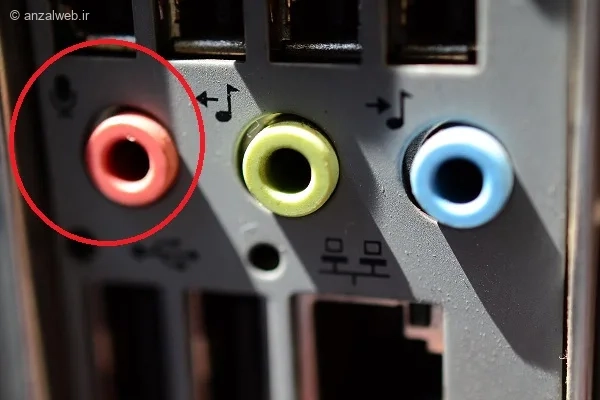 یک پورت صوتی ترکیبی یا Combo Audio Jack، معمولاً با رنگ قرمز مشخص میشود که مربوط به میکروفون است.