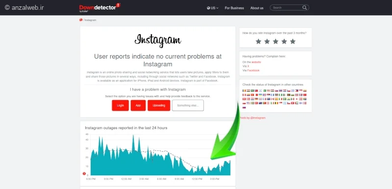 گاهی اوقات وقتی در اینستاگرام با خطای “an Unexpected error occurred” روبرو میشوید، هیچ کاری از دست شما ساخته نیست. این مشکل معمولاً به این دلیل پیش میآید که سرورهای خود اینستاگرام دچار مشکل شدهاند. خوشبختانه در بیشتر موارد، پس از چند ساعت سرورها دوباره به حالت عادی برمیگردند و در دسترس کاربران قرار میگیرند. شما میتوانید برای اطمینان از این موضوع، به وبسایت Downdetector.com مراجعه کنید و در صفحه اصلی آن، وضعیت کنونی سرورهای اینستاگرام را بررسی کنید.