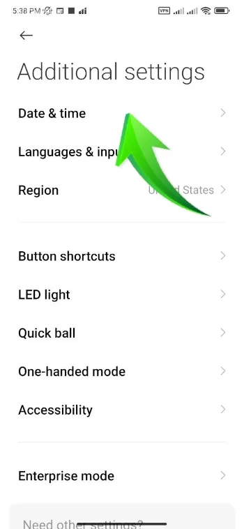 اگر تاریخ و ساعت تلفن همراه شما به درستی تنظیم نباشد، ممکن است با خطاهای ناگهانی در اینستاگرام مواجه شوید. برای اصلاح این مشکل، ابتدا وارد بخش تنظیمات (Settings) گوشی خود شوید. سپس، گزینه Additional Settings را انتخاب کنید و تاریخ و زمان را به صورت خودکار یا دستی اصلاح نمایید.