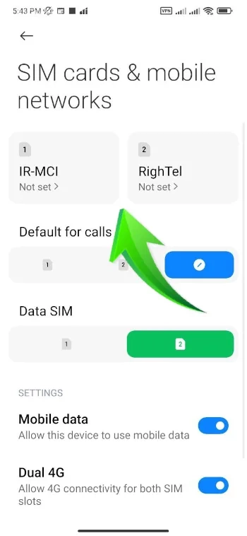 راه حل دیگری برای برطرف کردن این مشکل، عوض کردن نوع اتصال اینترنت است. اگر در حال استفاده از اینترنت سیمکارت هستید، آن را خاموش کرده و به وایفای مودم متصل شوید. همچنین، تغییر سیگنال موبایل از ۴G به ۳G نیز میتواند خطای “Help us confirm it’s you” در اینستاگرام را از بین ببرد. برای این کار، وارد بخش تنظیمات (Setting) گوشی خود شوید و گزینه Sim cards and mobile data را انتخاب کنید.