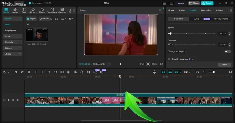 در نهایت، روی دکمه Export کلیک کنید تا فرآیند ذخیرهسازی ویدیو آغاز شود.