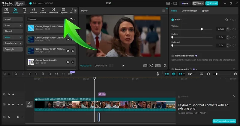 صدای بوق سانسور در کپ کات چگونه قرار بدهیم؟