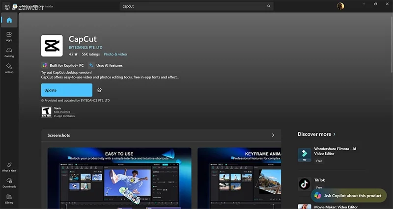 برنامههای مختلفی برای سانسور و تکهتکه کردن ویدیوها در دسترس هستند، اما کپکات یکی از محبوبترین ابزارها در این زمینه است. شما میتوانید نسخههای مخصوص iOS و اندروید آن را از فروشگاههای اپاستور و گوگلپلی دریافت کنید. اگر از کاربران ویندوز هستید، کافی است به Microsoft Store مراجعه کرده و CapCut را جستجو کنید. این برنامه فضای کمی اشغال میکند و نصب آن بسیار آسان است.