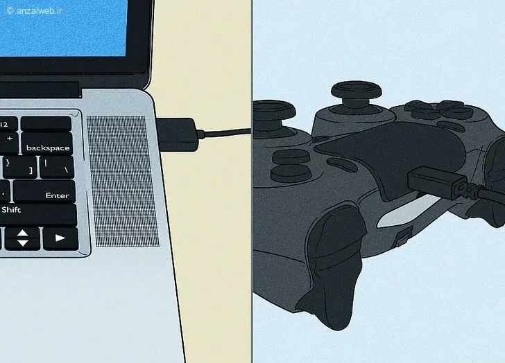دسته پلیاستیشن خود را با استفاده از یک سیم به لپتاپ متصل کنید.