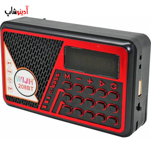 اسپیکر بلوتوثی قابل حمل wijh 208bt یک اسپیکر کوچک قابل حمل با صدای عالی و کیفیت بالا است. این اسپیکر دارای یک باتری لیتیومی قابل شارژ می باشد.