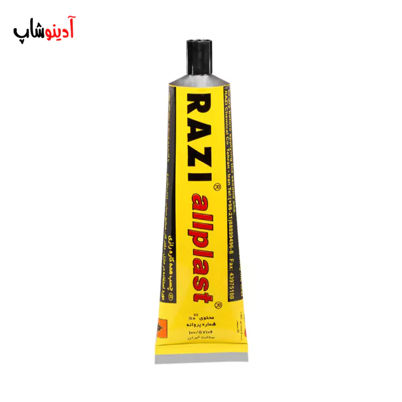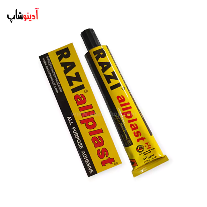 چسب همه کاره رازی نوعی چسب قطره ایی پرکاربرد است چسب همه_کاره رازی مدل ALLPLAST یکی از پرمصرف ترین و پرفروش ترین محصولات شرکت رازی میباشد حجم این محصول 30 میلیلیتر بوده و از آن جهت اتصال انواع قطعات چوبی چرم، پارچه، کاغذ و مقوا و غیره استفاده کرد.